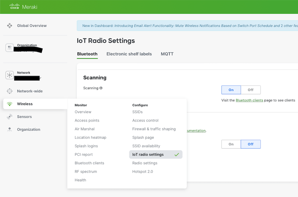 Start with adding your equipment to your inventory and place the sensors in a network. After that go to the Wireless tab and press IoT radio settings below: