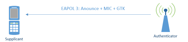 The third frame is send from the Authenticator and now contains Group Temperal Key(GTK) used to encrypt multicast traffic.