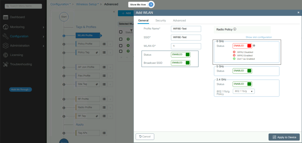 So setting up my first WiFi6E SSID with an Cisco Catalyst 9166I AP connected to a Cisco Catalyst 9800 controller.